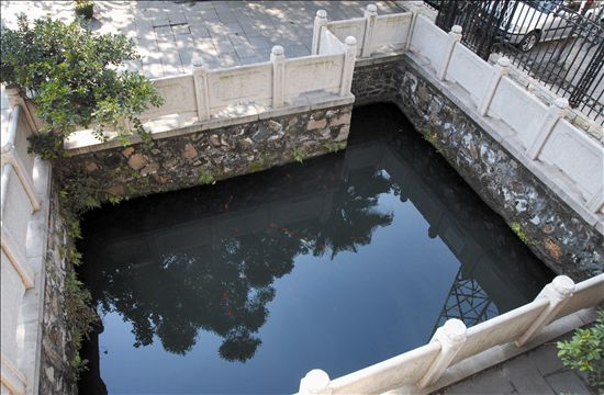 除了上述记载外,又如“墨池坊”,《永嘉县志-古迹》载:“墨池,在墨池坊,王右军临池作书,洗砚於此。”明叶式《墨池记》云:“右军刺温多惠政,暇辄复临池以适其情,后人因祠於郡城。”“华严石砚”;温州江北罗浮华严山产石砚,王羲之得之甚喜,简帖中有:“近得华严石砚颇佳”之语。相传温州郭公山“富览亭”三字为王羲之手书。旧温州府署左井栏内侧刻有“容成太玉洞”五字,相传也为王羲之所书。王羲之游恶溪见溪水惊险奇绝,遂书“突星濑”三字於溪边大石。温州华盖山下旧有“王谢祠”,为温州人民怀念王羲之、谢灵运而建的。