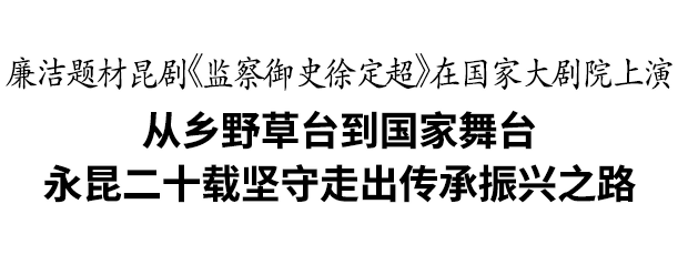 此番在国家大剧院献演的《监察御史徐定超》,是永嘉昆剧团近年来创排的又一精品。在中共浙江省纪委、中共温州市委的指导下,该剧以清末监察御史、浙江先贤徐定超为原型,刻画了其在担任京畿道监察御史期间“铁面查段案、连劾十六贪”的清廉故事,融永昆艺术之清雅与监察文化之刚正于一体,塑造了一位持身守正、不惧权臣、担当有为的清官廉吏形象,唱响了一曲激浊扬清、守护世道人心的正气之歌。